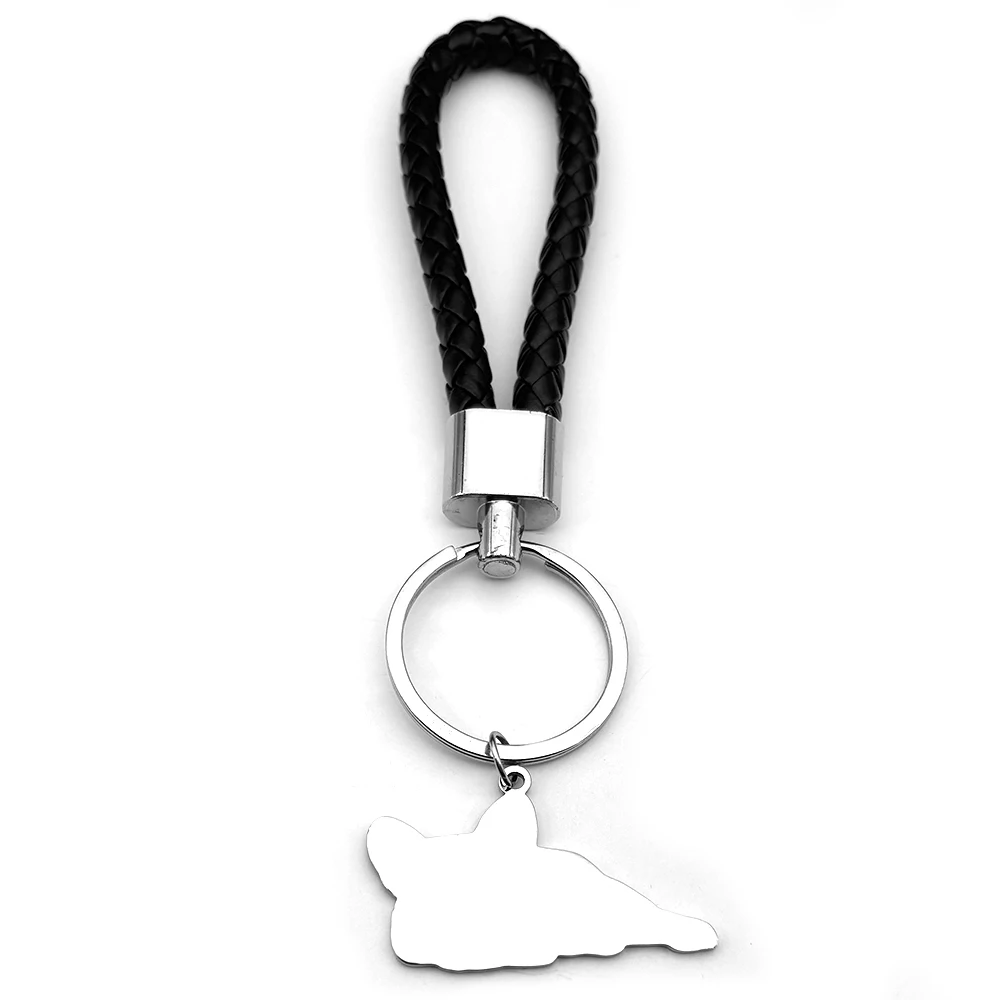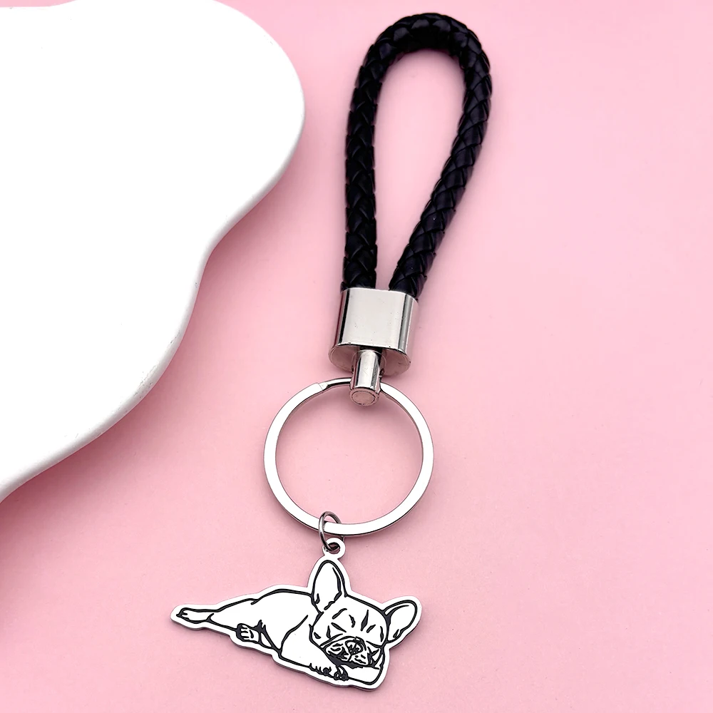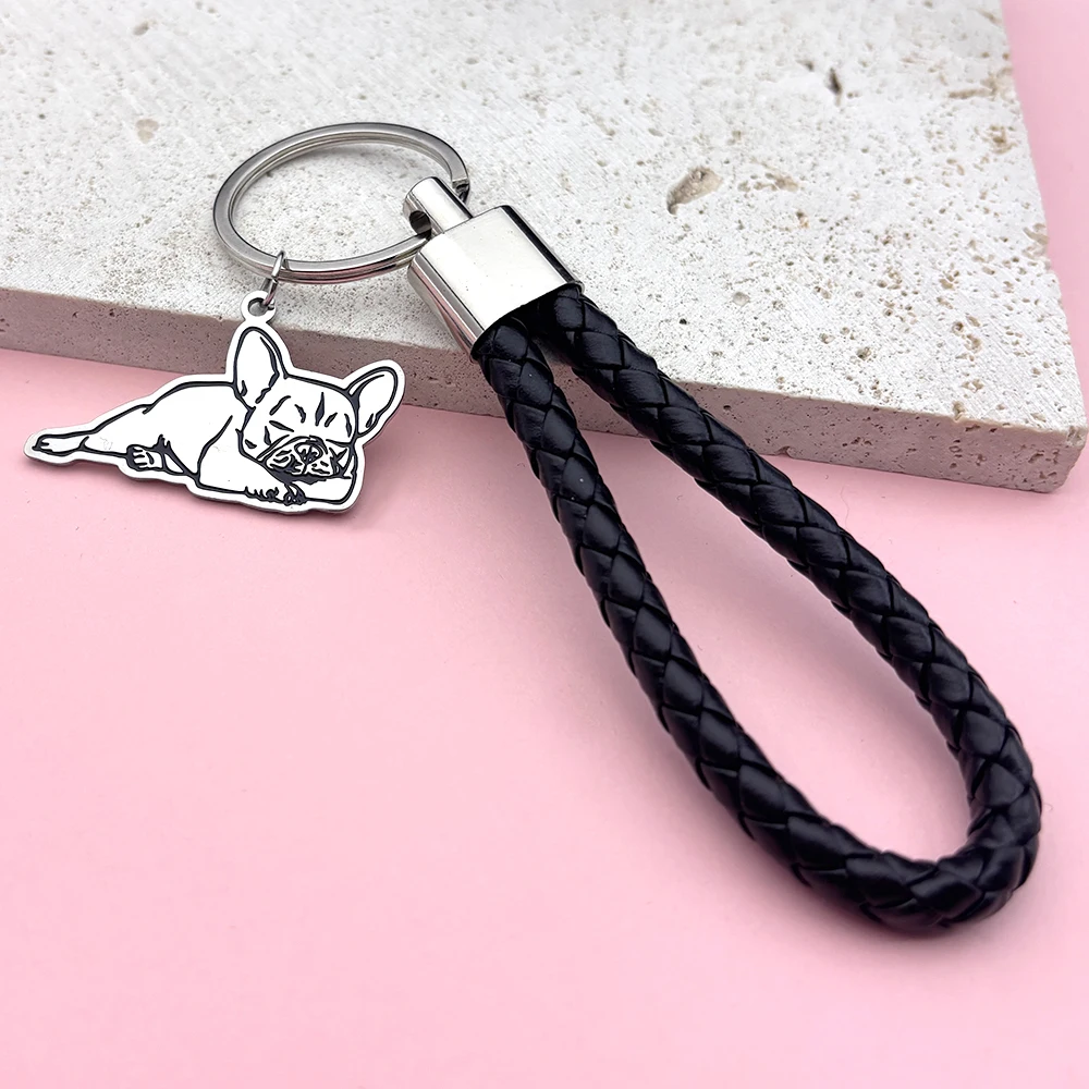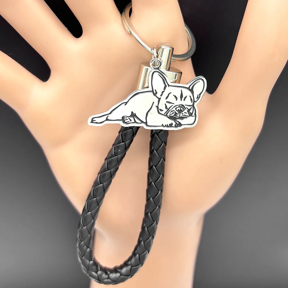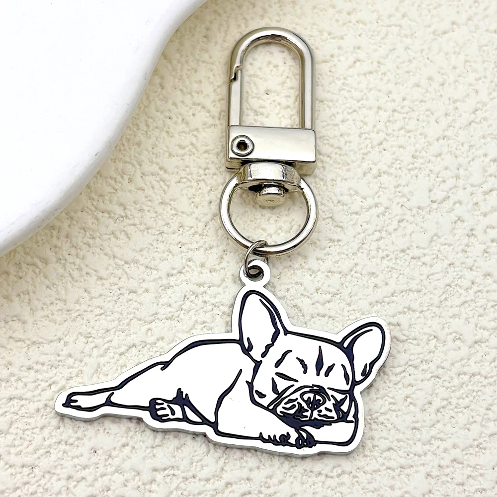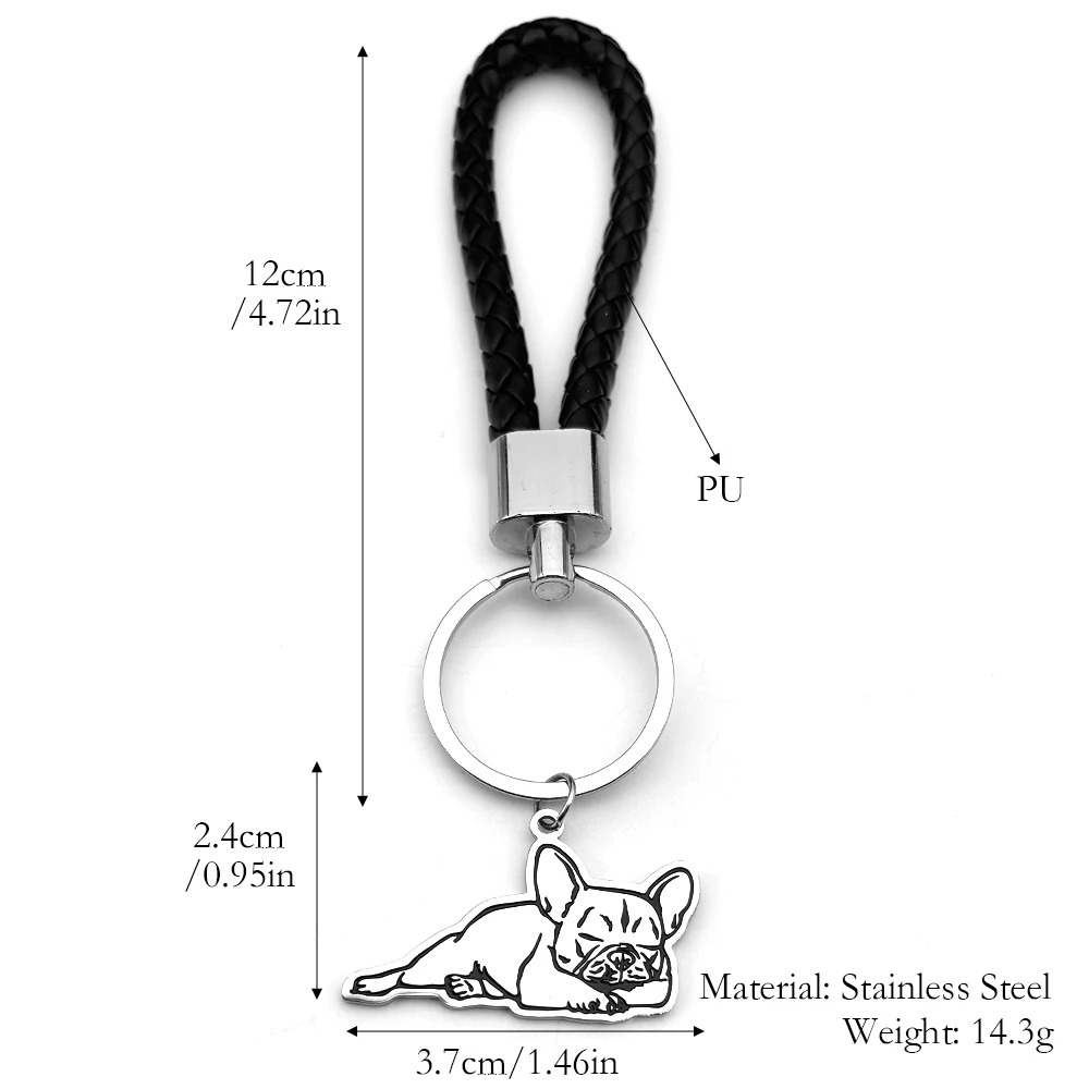 - Lazy Sleep French Bulldog Keyring For Women Men Stainless Steel Silver Color Animal Puppy Bag Hanging Keychains Jewelry